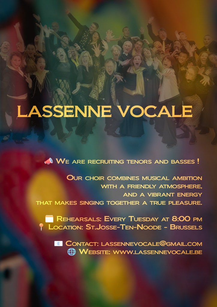 Lassenne Vocale is a committed chamber choir based in Brussels, born from the collaboration of talented instrumentalists from the Brussels Royal Conservatories. Named after the underground river flowing beneath the city, the ensemble symbolizes the harmonious interplay of tradition and innovation that defines Brussels’ rich cultural fabric.